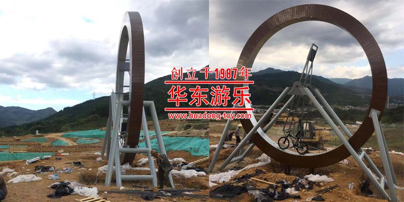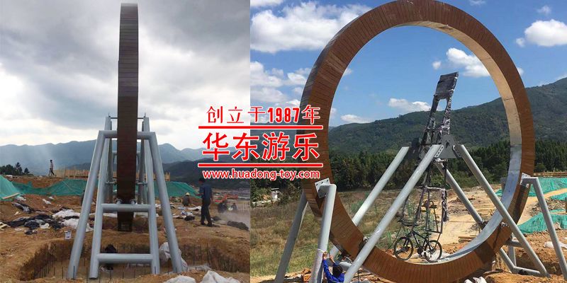• 飞车秋千项目的设计融合了摩天轮、秋千、自行车三大主题相结合,人骑在自行车上来回摇荡,当您用力登上最高点时那种自上而下的感觉仿佛在飞翔,体验那种超重与失重状态下惊魂一刻的刺激,也可以感受一下那种仿佛要飞出轨道般的惊心动魄。
