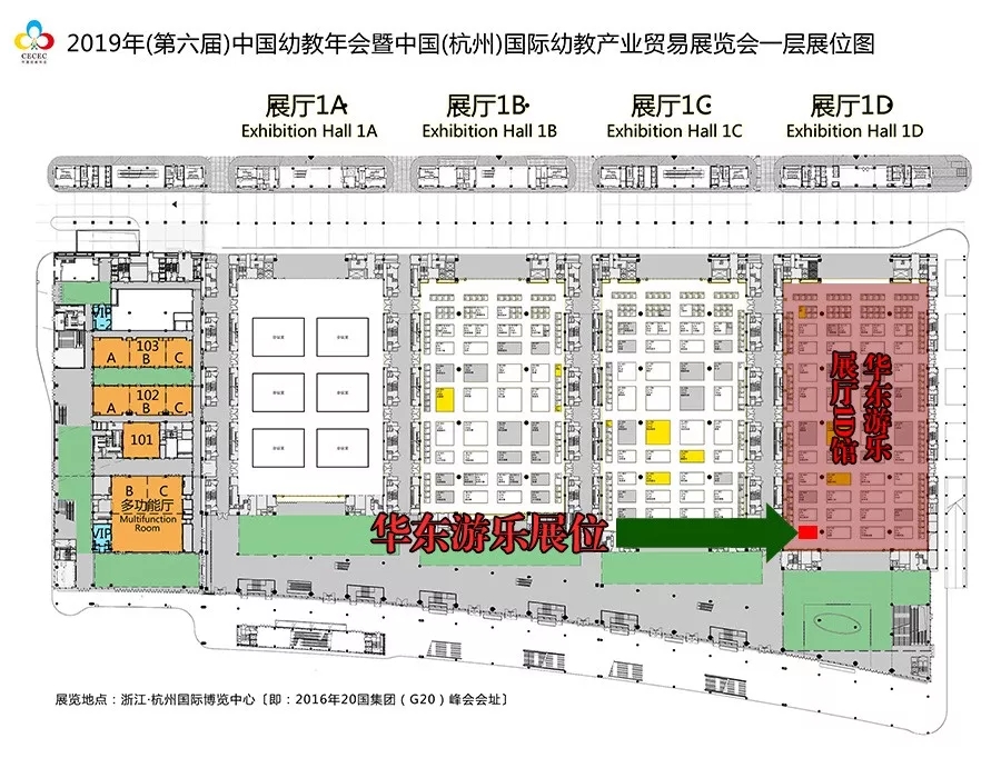 具体位置标示见下图(绿色箭头所指红色方框为乐鱼游乐展位):