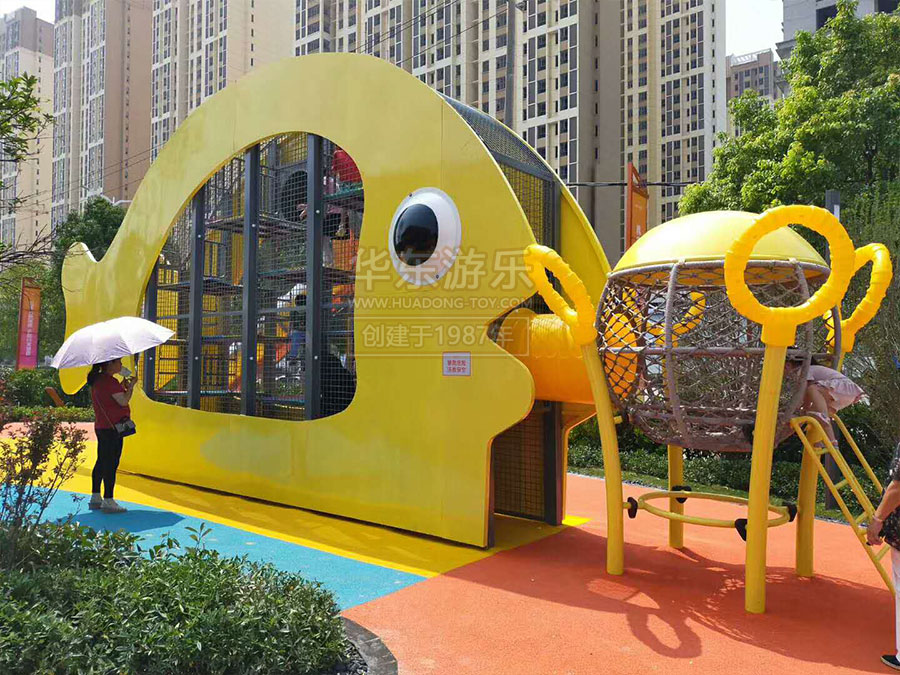 • 碧桂园城市之光案例是由乐鱼游乐自助设计的研发的以水中的鱼儿为主题而设计的游乐设备,该游乐设备具有爬网、不锈钢滑梯、攀岩设备等,设计新颖,主题明确,深受小朋友的喜爱。