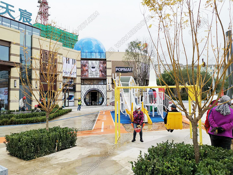 • 碧桂园天宸房地产项目是一个生活小区的休闲娱乐项目,该项目具有很好的主题性,采用以长颈鹿为主题,生动形象,具有很高的趣味性,观赏性,深受小朋友们的喜爱,项目中增加了乐鱼游乐生产设计的秋千组合,为生活区的人们提供了很好的休闲场地和设施。