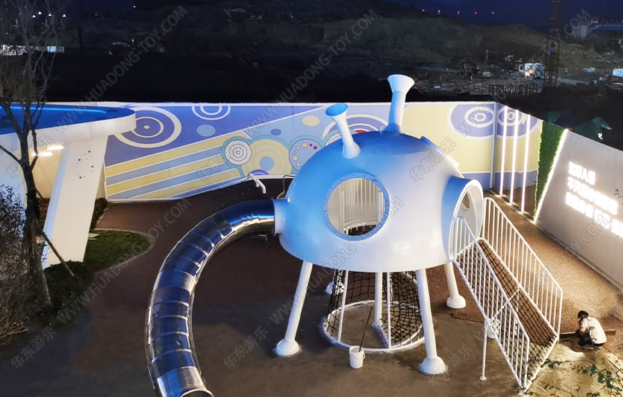 • 隆回县碧桂园天玺湾非标定制案例采用的是一个由乐鱼游乐自主研发和设计的一款造型独特,外观新颖的具有不锈钢滑桶、爬网、钻洞等功能的游乐设备,并在该游乐场设置了摇摇乐、秋千等游乐设备,为生活在该区域的小朋友提供了一个休闲,娱乐 ,健身的场所。
