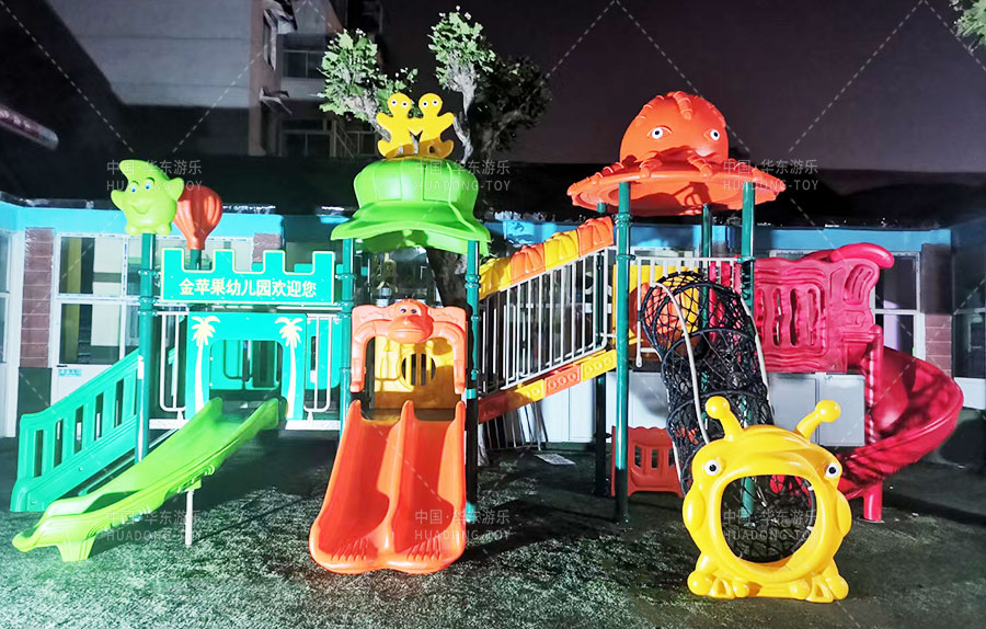 山东省济南市历城区金苹果幼儿园是一家由教育局批准的幼儿园,主要提供学前教育的服务和托管,此次学校选用的是由乐鱼游乐自主生产和研发的动物系列组合滑梯,该滑梯设置了网洞攀爬、S形滑梯、直行滑梯、爬梯等功能,独特的动物系列设计风格深受广大小朋友们的喜爱。