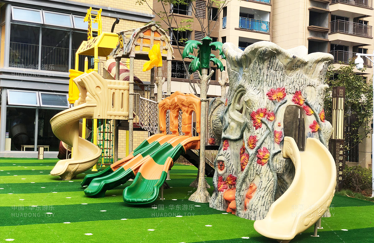 长沙市天心区教育局大唐印象幼儿园选用的是乐鱼游乐自主研发的动物系列滑梯、该滑梯具有攀爬、滑梯、钻洞、爬网、枞林攀爬等功能,能够锻炼小朋友的四肢臂力,很好的让小朋友在玩耍中健康快乐的成长。