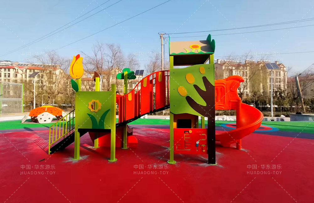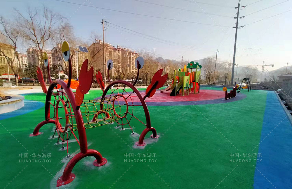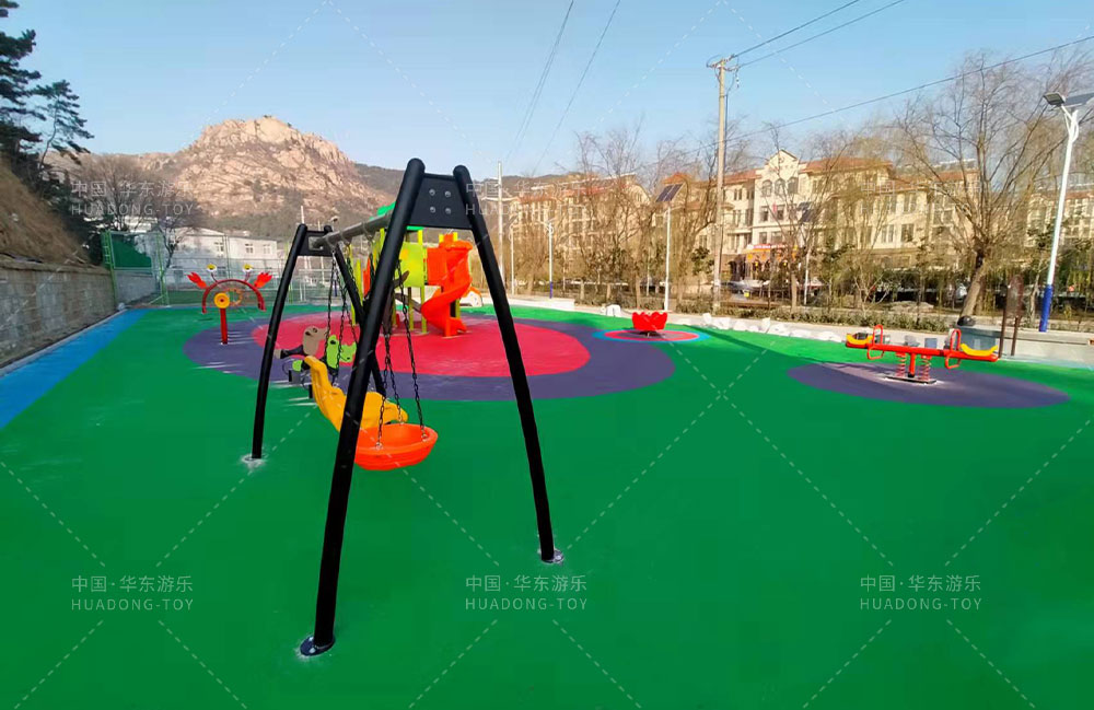 • 崂山区松山后社区总支部委员会项目是专门为小区的居民提供休闲、娱乐、玩耍的场所,整个游乐场设置的有小朋友喜欢的秋千、滑梯组合、螃蟹攀爬、跷跷板、传声筒等游乐设备。