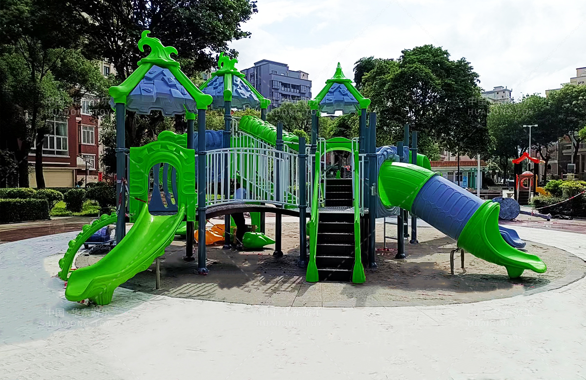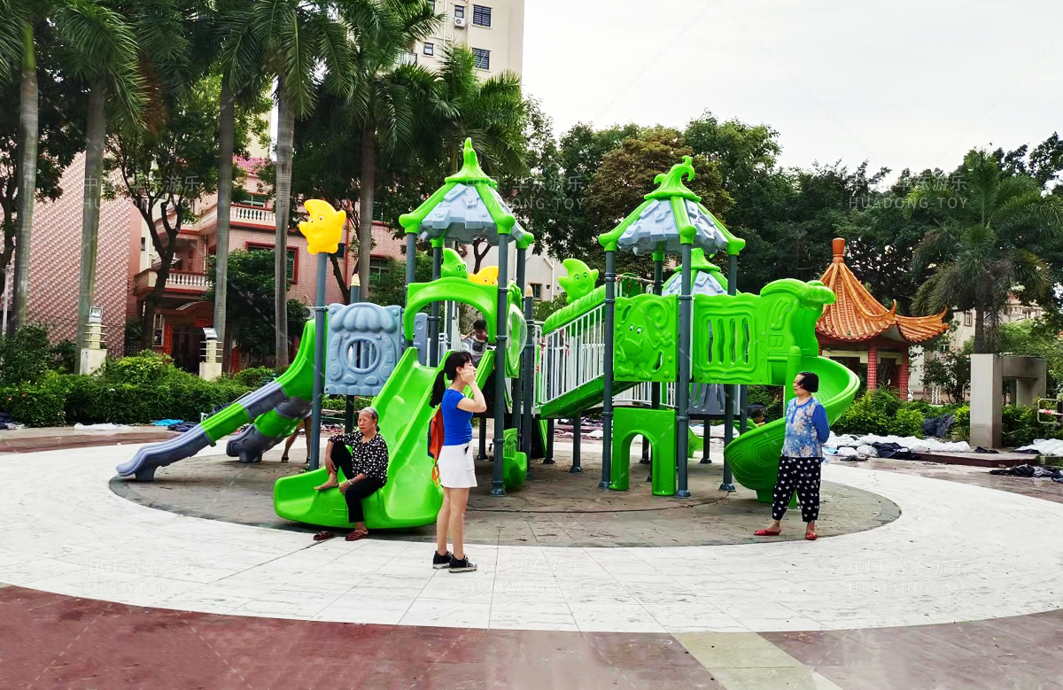 该小区选用的是乐鱼游乐自主研发和设计的具有攀爬、钻洞、滑梯为一体的魔法屋系列组合滑梯和动物园系列滑梯,让生活在该小区的人有一个休闲娱乐的场所。