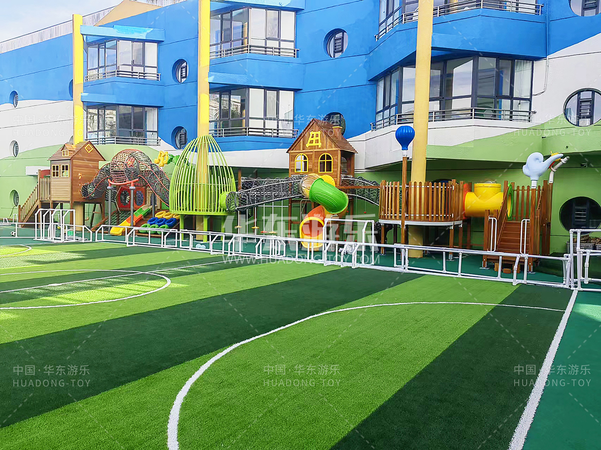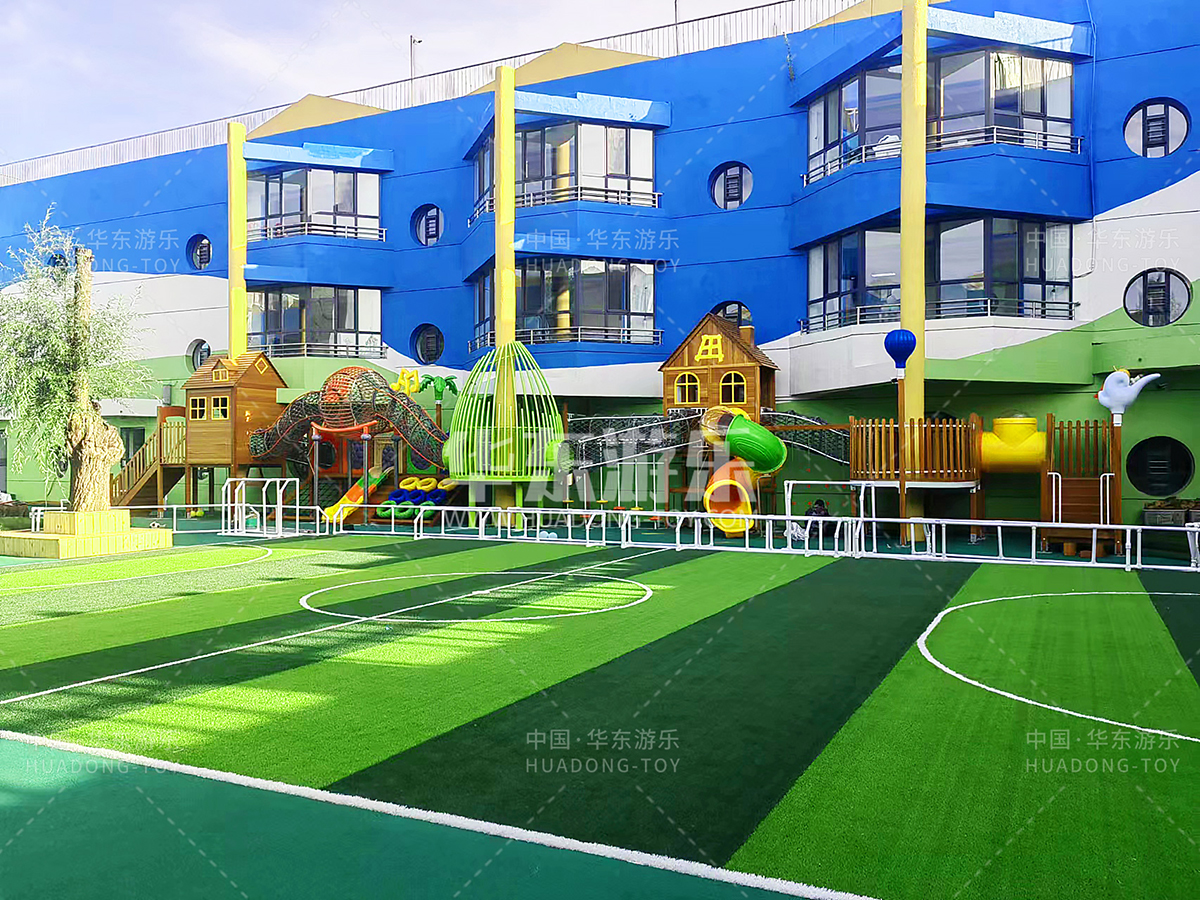 • 鄂尔多斯市东胜区第三幼儿园选用的是乐鱼游乐自主设计的非标定制系列的游乐这边,整个游乐设备设计了小朋友喜欢的滑梯、钻洞、爬网、游戏屋等功能的游乐设备,精美的品质、完美的造型让整个游乐园充满了生机与活力,同时也为小朋友的玩耍提供了一个很好的场所,让幼儿园的教学变得更加轻松愉悦。