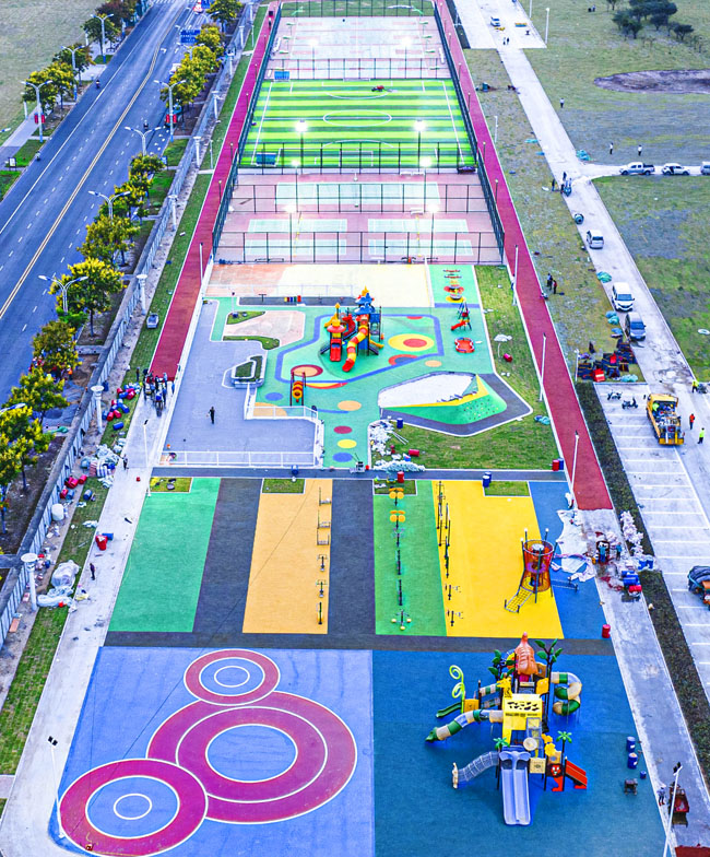 • 宿城区宿苏工业园区选用的是乐鱼游乐自主研发和设计的组合滑梯系列产品,是 园区根据宿迁市市区公共空间治理“三年行动”实施方案,瞄准区内居民对民生项目需求,提前谋划青海湖西路微公园、苏州公园童趣园、玄武湖路北侧临时健身公园和中央商务区景观提升等民生项目建设,整个项目完成后产生了巨大的影响力,并2022年10月12日刊登于《人民日报》。