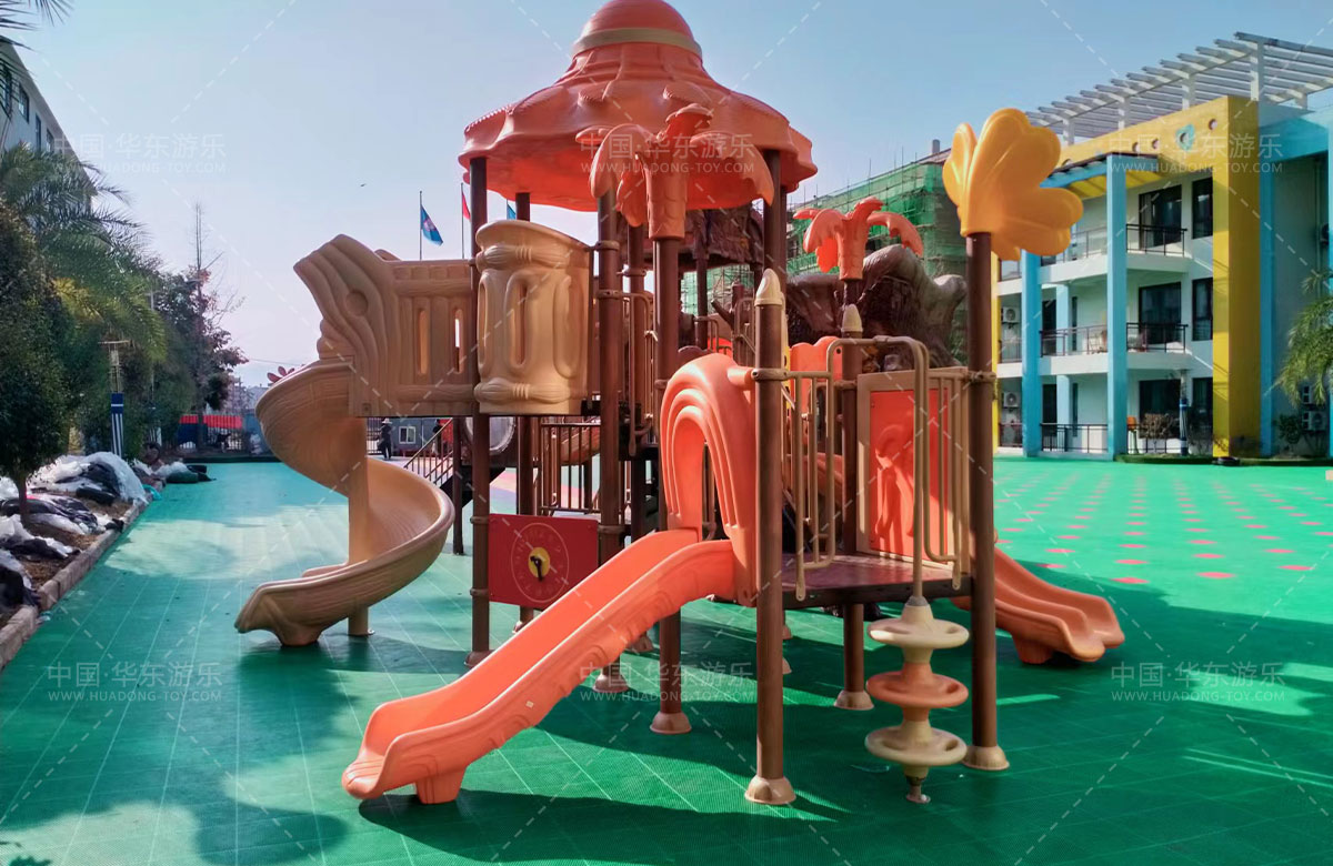 • 江西省上饶市临湖中心幼儿园是一个专业的学前幼儿教育学校,此次选用的是乐鱼游乐自主研发和设计的具有滑梯、钻洞、攀爬等功能为一体的远古部落系列的组合滑梯,该滑梯具有功能齐全、颜色艳丽、主题性强、使用寿命长等特点,深受小朋友们的喜爱。