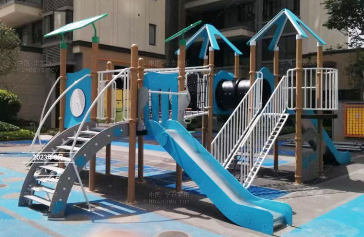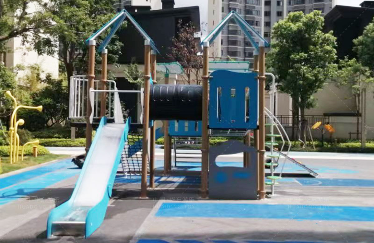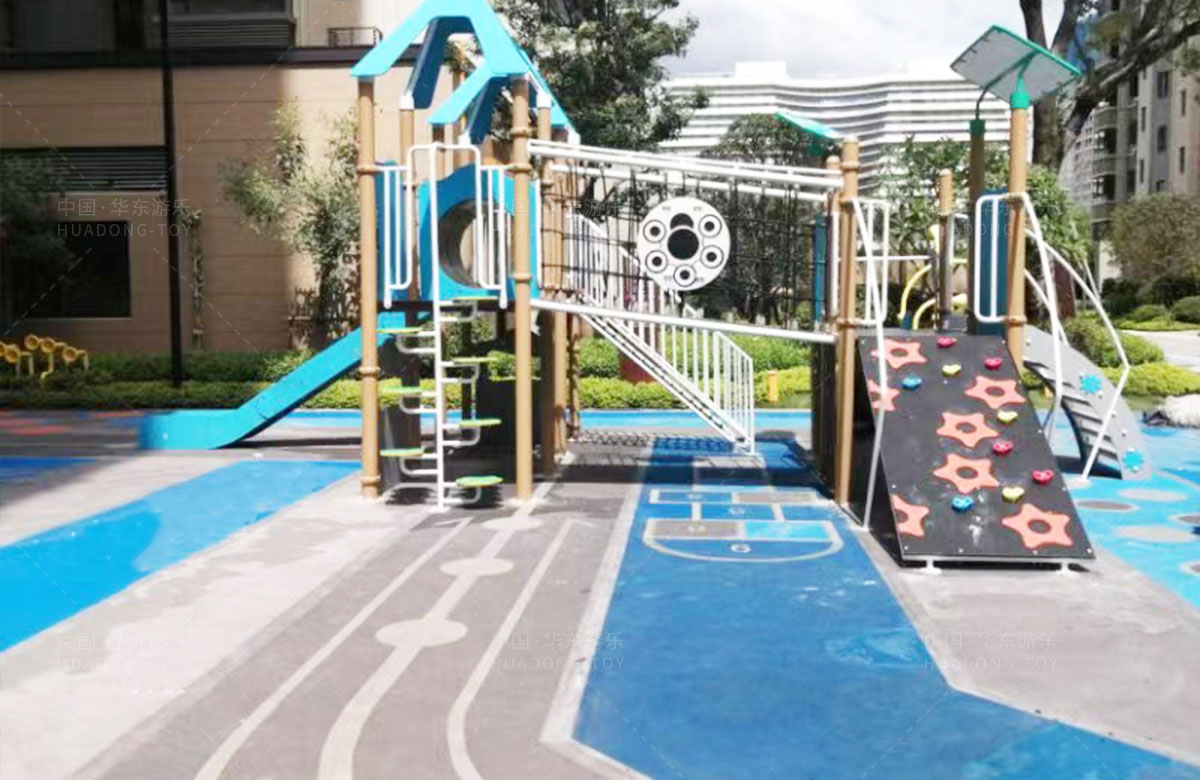 该项目选用的是乐鱼游乐自主研发和设计的PE板系列组合滑梯,该滑梯是一款具备了攀爬墙、攀爬网、攀爬梯、空中网桥、不锈钢滑梯等功能为一体的综合性游乐设备,除此之外还设置了小朋友喜欢的传声筒、攀爬墙、翻翻乐和成年健身器等设备,不仅丰富人们的休闲生活,也为该小区增加了更多的生机与活力。