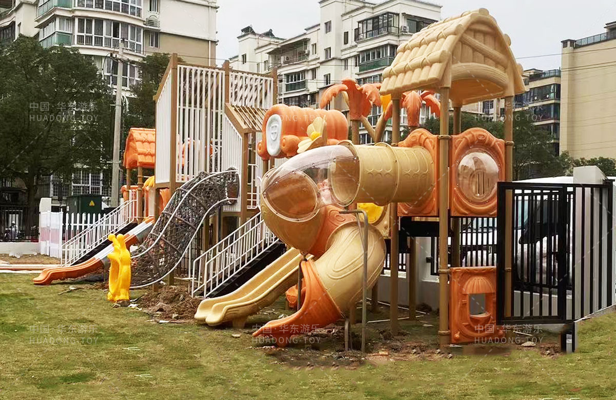 • 永嘉县童真幼儿园是一家专业的学前培训学校,此次选用的儿童游乐设备是乐鱼游乐自主研发和设计的大型户外组合滑梯,该滑梯是一款具备了攀爬网、大型滑筒、旋转滑梯、直行走梯、双人滑梯等功能为一体的综合性游乐设备。