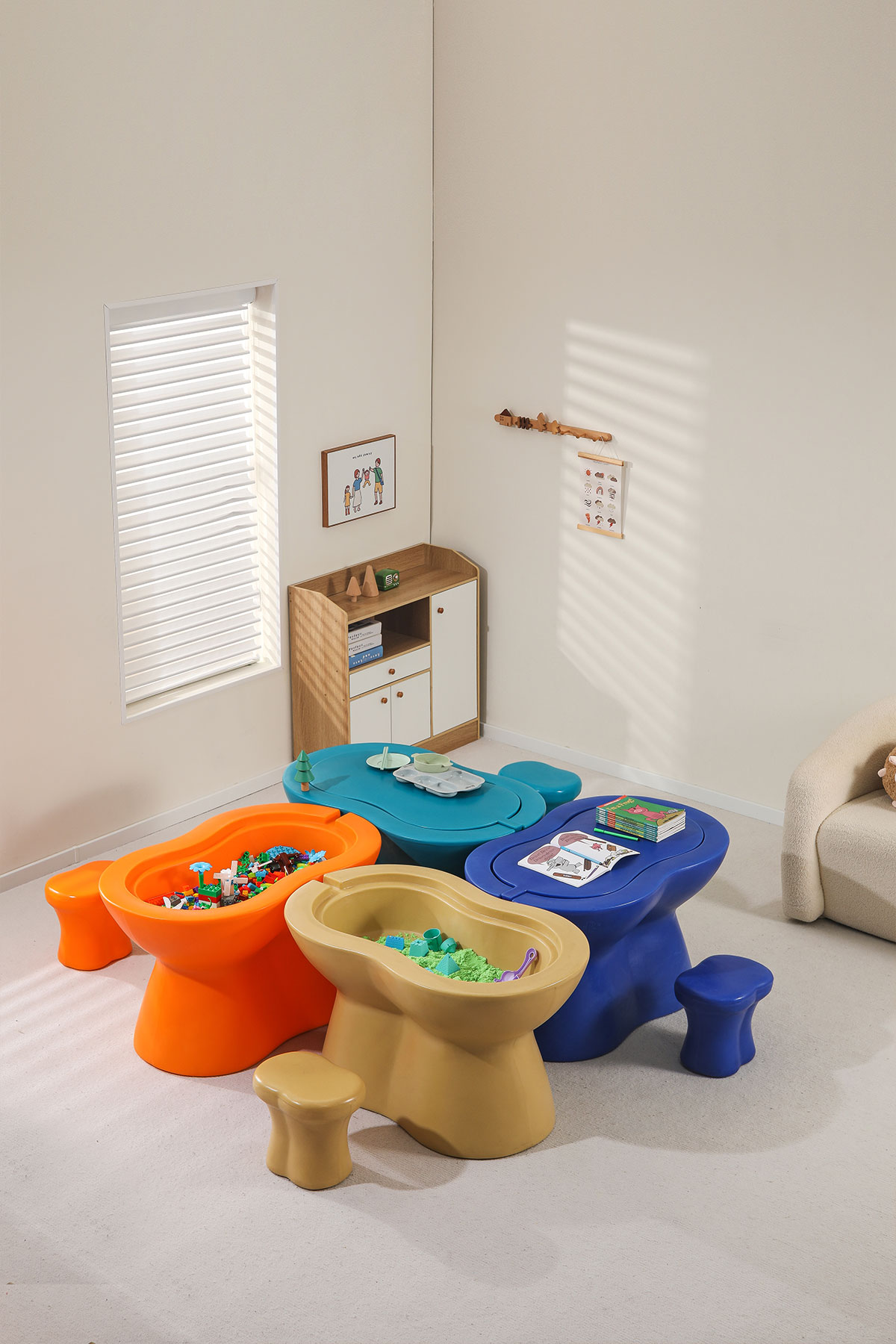这款儿童游戏桌的设计理念就是“多功能一体化”。不仅是孩子们做作业、学习的好帮手,更是他们娱乐、游戏的最佳伙伴。桌子可以根据需要轻松转换功能,实用性和趣味性并重。