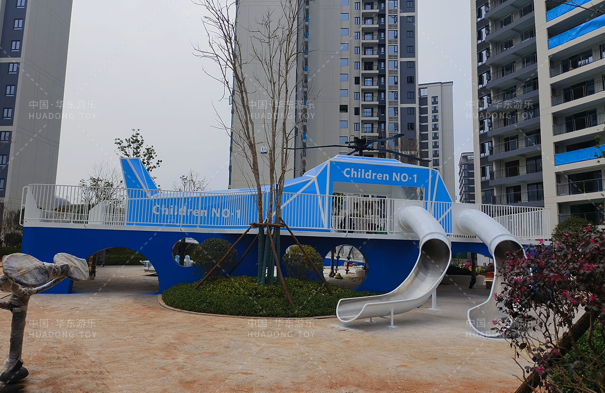 • 江西省上饶市碧桂园是一家高端的生活服务小区,此次选用的是乐鱼游乐自主研发和设计的直飞机主题的非标定制游乐设备,分别设置了大型滑筒、攀爬网、攀爬梯、钻洞、攀爬墙、大型观光廊架等功能,卡通的造型、齐全的功能、深受孩子们的喜爱,除此之外还添置了各种类型的健身器、儿童秋千、儿童摇摇乐、旋转椅等游乐设备,不仅丰富了小区的生活,也为老人提供了一个很好的健身场所。