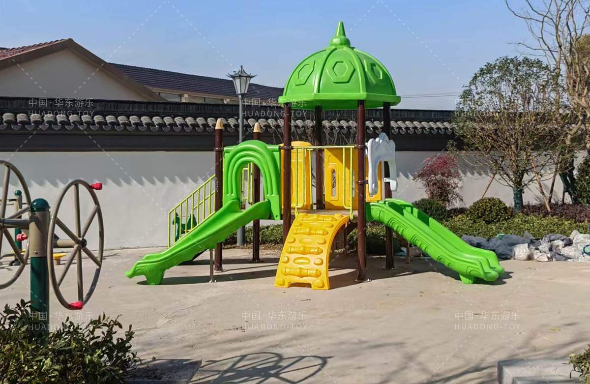 常州市桃花院子选用的是乐鱼游乐自主研发和设计的别墅屋系列组合滑梯,该滑梯采用滚塑一体成型,具有颜色艳丽、使用寿命长等特点,同时为了更好的为生活在该小区的人们服务,还设置了各种类型的健身器,以及小朋友喜欢的儿童跷跷板、儿童秋千和传声筒等游乐设备,不仅丰富了小区的生活,也为小朋友的玩耍提供了一个很好的场所。