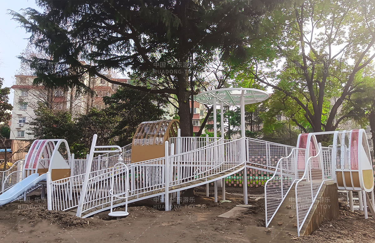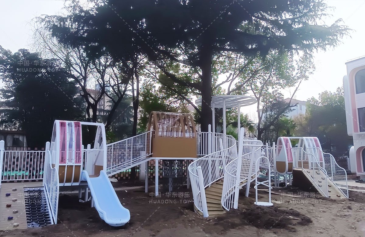 • 虹口区实验幼儿园简介创建于1993年9月。1994年定为一级一类幼儿园。儿园具有现代化的设施和美丽童趣的园舍。总占地面积4800多平方米。建设面积3000多㎡。绿化面积1800多㎡。 此次幼儿园游乐项目选择的是乐鱼游乐自主研发和设计的一款综合性木质系列非标定制产品,不仅功能齐全,主体性也非常的适合幼儿园的场景设置。