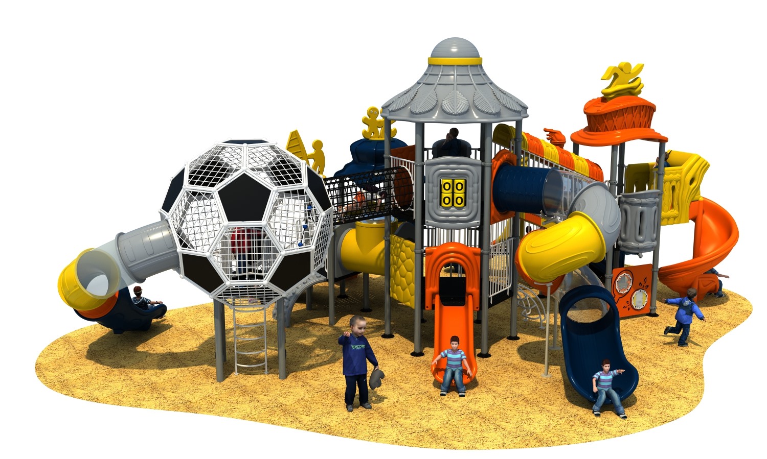 • 赛事系列游乐设备是乐鱼游乐根据常见的足球、垒篮球体育等赛事而自主研发和设计的组合滑梯,它是一款能够引导孩子们在玩耍时小朋友之间应该互相帮助、相互鼓励的无动力游乐器械,也是一个具备教导孩子们学会通过自己的努力取得最终胜利而敢于拼搏和挑战的游乐设备,卡通的造型、生动的形象让小朋友在玩耍的过程中有一个愉快的童年。