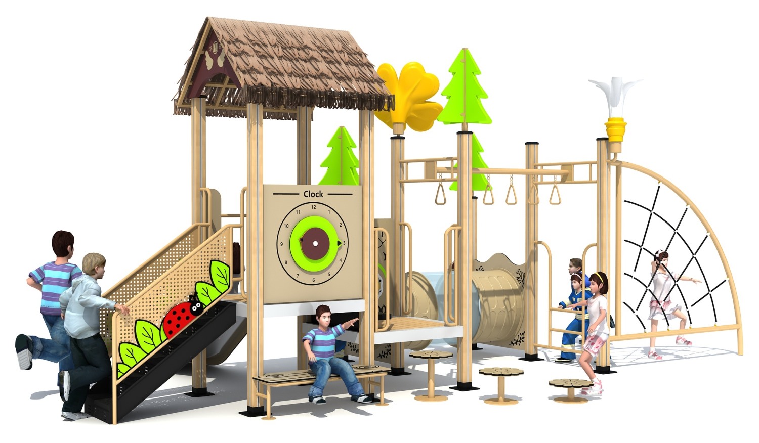 • 塑木系列组合滑梯采用环保塑木材料,结合创意设计,打造出既安全又富有乐趣的儿童游乐设施。该系列滑梯色彩鲜艳、形态多样,能够满足不同年龄段孩子的玩耍需求。其结构设计稳固,表面光滑无锐角,确保孩子们在尽情嬉戏的同时,享受到全方位的安全保护。塑木材料还具有良好的耐候性,经久耐用,是幼儿园、公园等儿童游乐场所的理想选择。