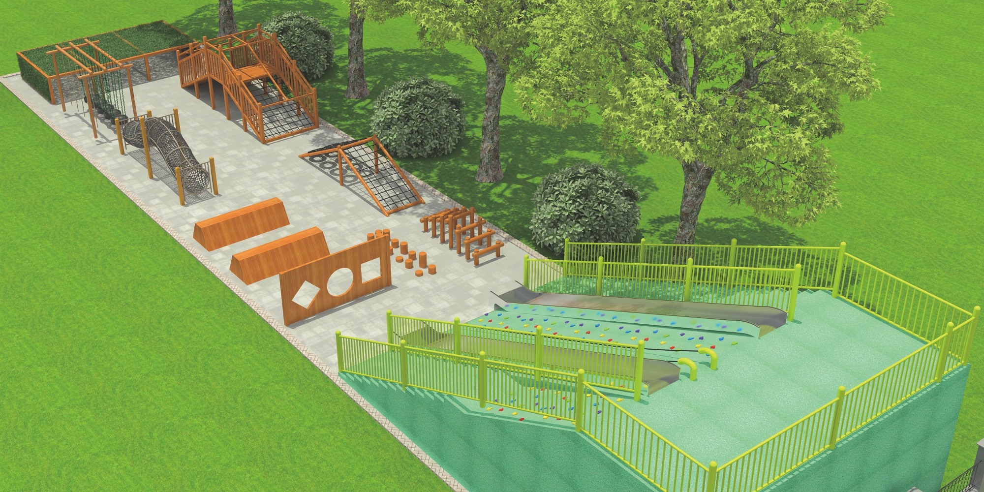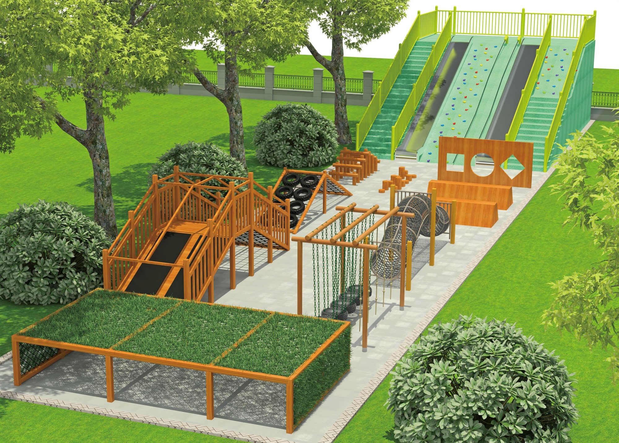 • 木质拓展设施采用天然木材打造,设计注重安全与挑战并重。通过悬挂桥、攀爬网、平衡木等多样化的障碍元素,旨在提升参与者的体能、平衡感及团队协作能力,同时享受亲近自然、挑战自我的乐趣。