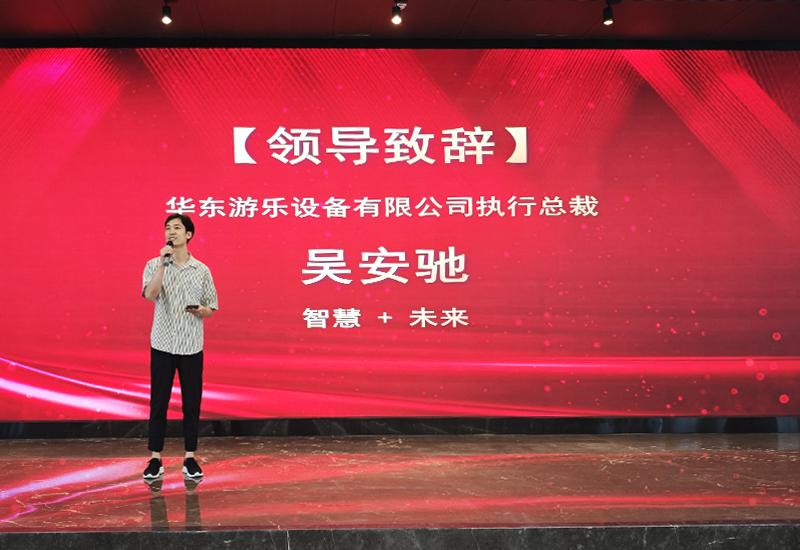 首先,在动员大会上,乐鱼游乐的执行总裁吴安驰分享了关于游乐设备与AI技术相互结合带来的智慧与未来。他相信,游乐设备与新技术的结合将会开启一个全新的游乐时代。