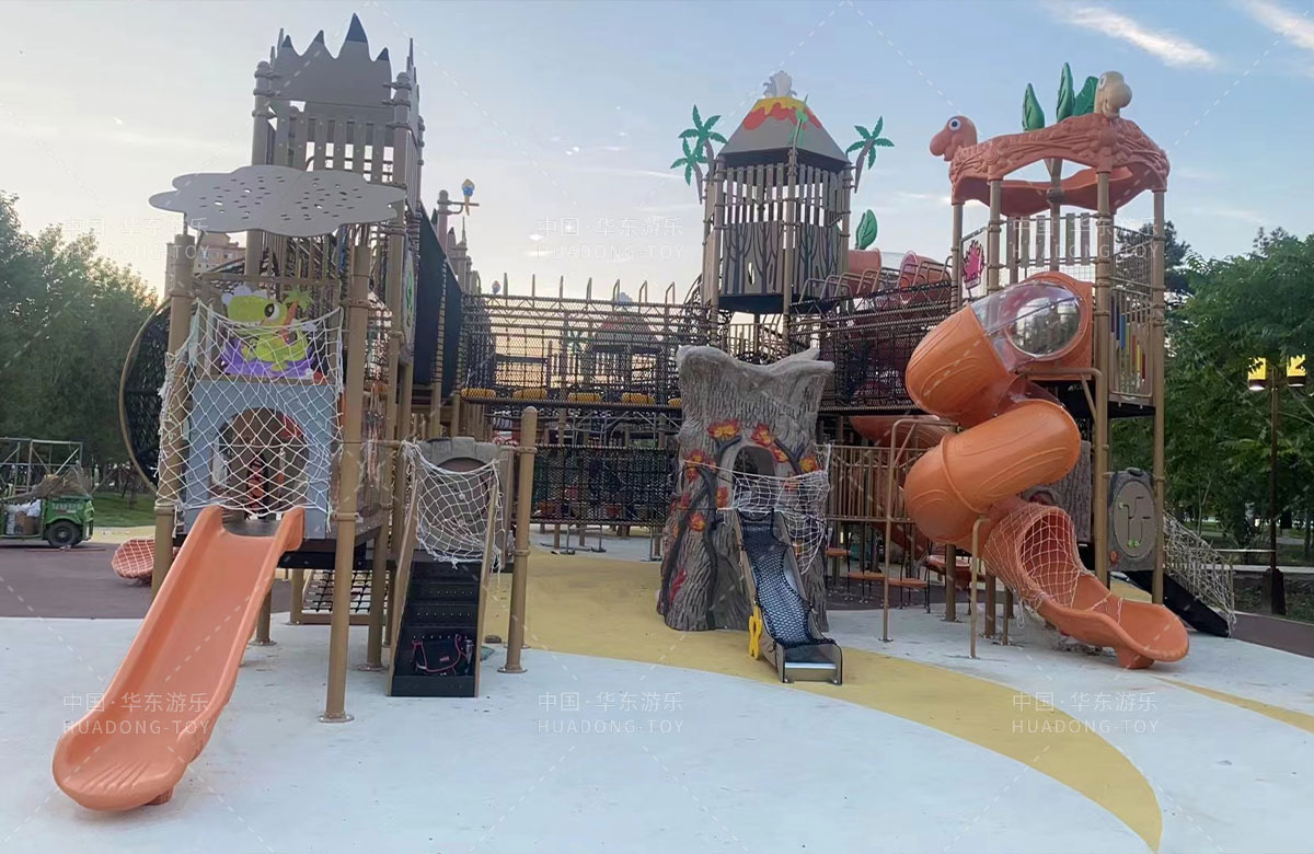 吉林省白城市洮北区兵器城北门公园是一个综合性市政公园,此次选用的是乐鱼游乐自主研发和设计的个性化定制系列的组合滑梯,该滑梯具有功能齐全、玩法多少、颜色艳丽、使用寿命长等特点,深受孩子们的喜爱。