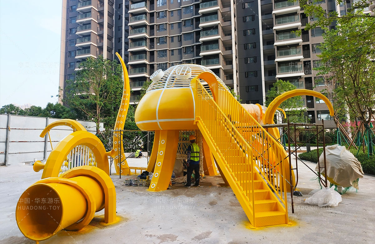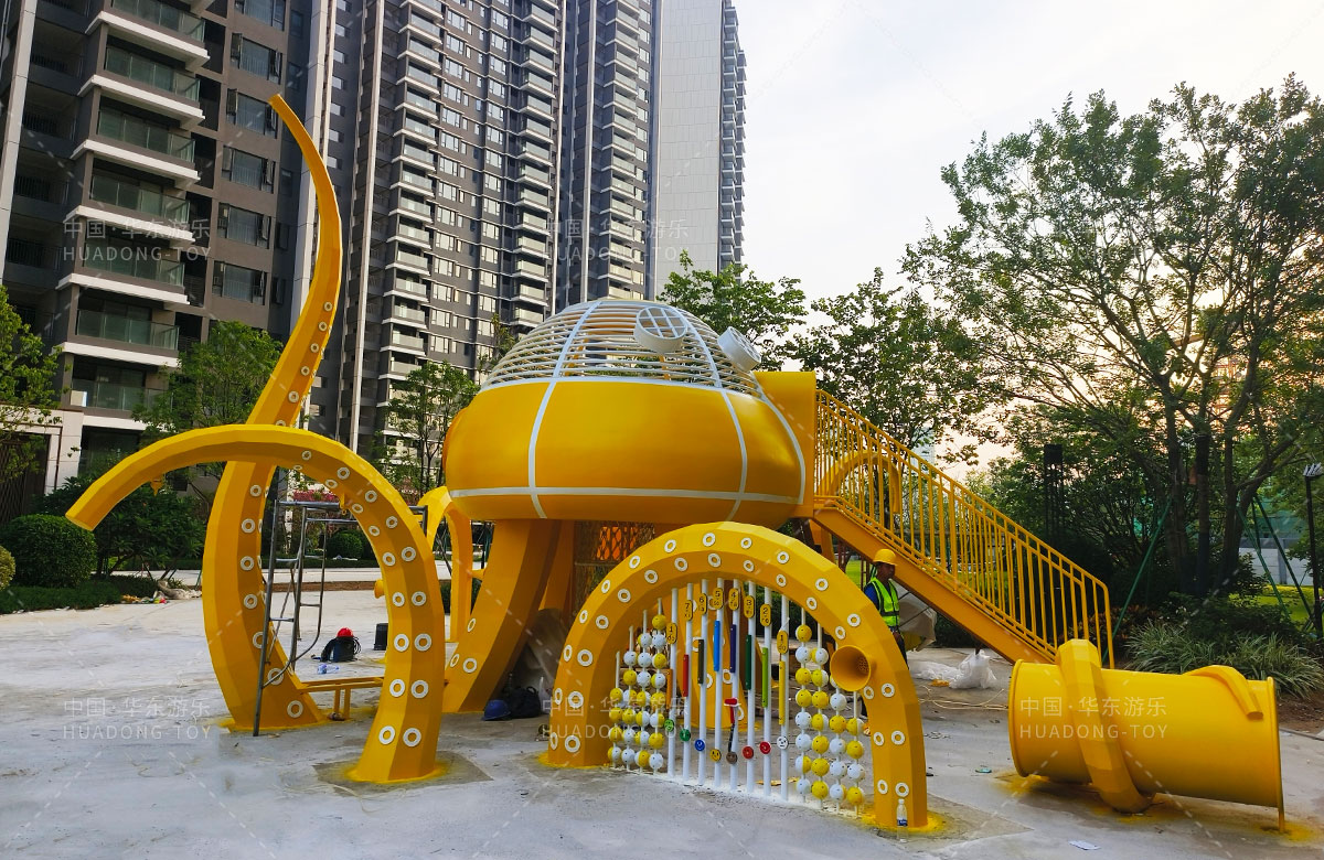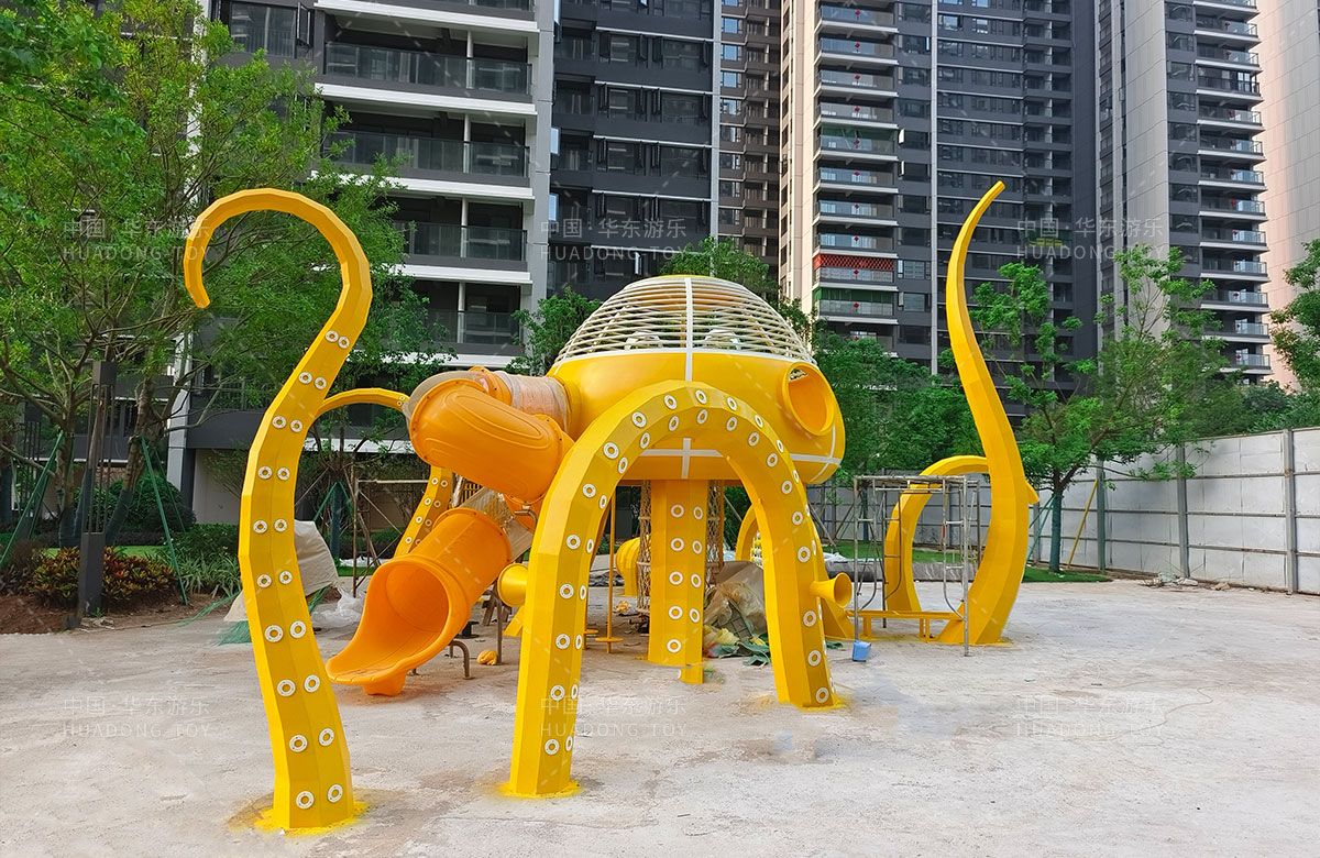 中海地产汕头阅江府选用的是乐鱼游乐自主研发和设计的以章鱼为主题而设计的非标定制的章鱼主题综合游乐园,整个游乐园用一个大型的章鱼设备为主题,设计了集钻洞、攀爬网、滑梯、打击乐器等功能为一体的综合性游乐设备,为生活在当地的人群提供了一个休息娱乐的场所,也为小朋友们的健康成长提供了保障。