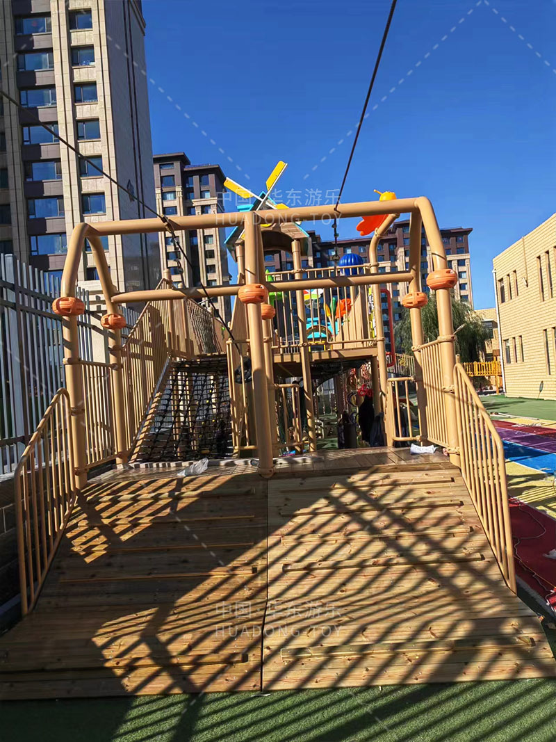 • 鄂尔多斯市铁西实验幼儿园是一个专业性的学前教育机构,为了更好的给锻炼孩子们的健康成长,该幼儿园选用了乐鱼游乐自主研发和生产的廊桥系列的多功能健身组合游乐设备,它不仅能够很好的为孩子们的成长提供保障,也能给老师的教学提供一个很好的场所。