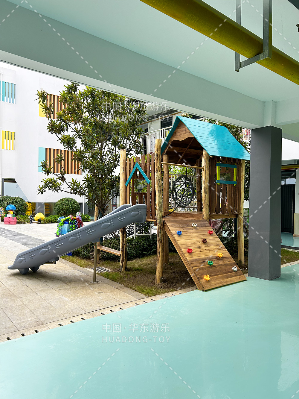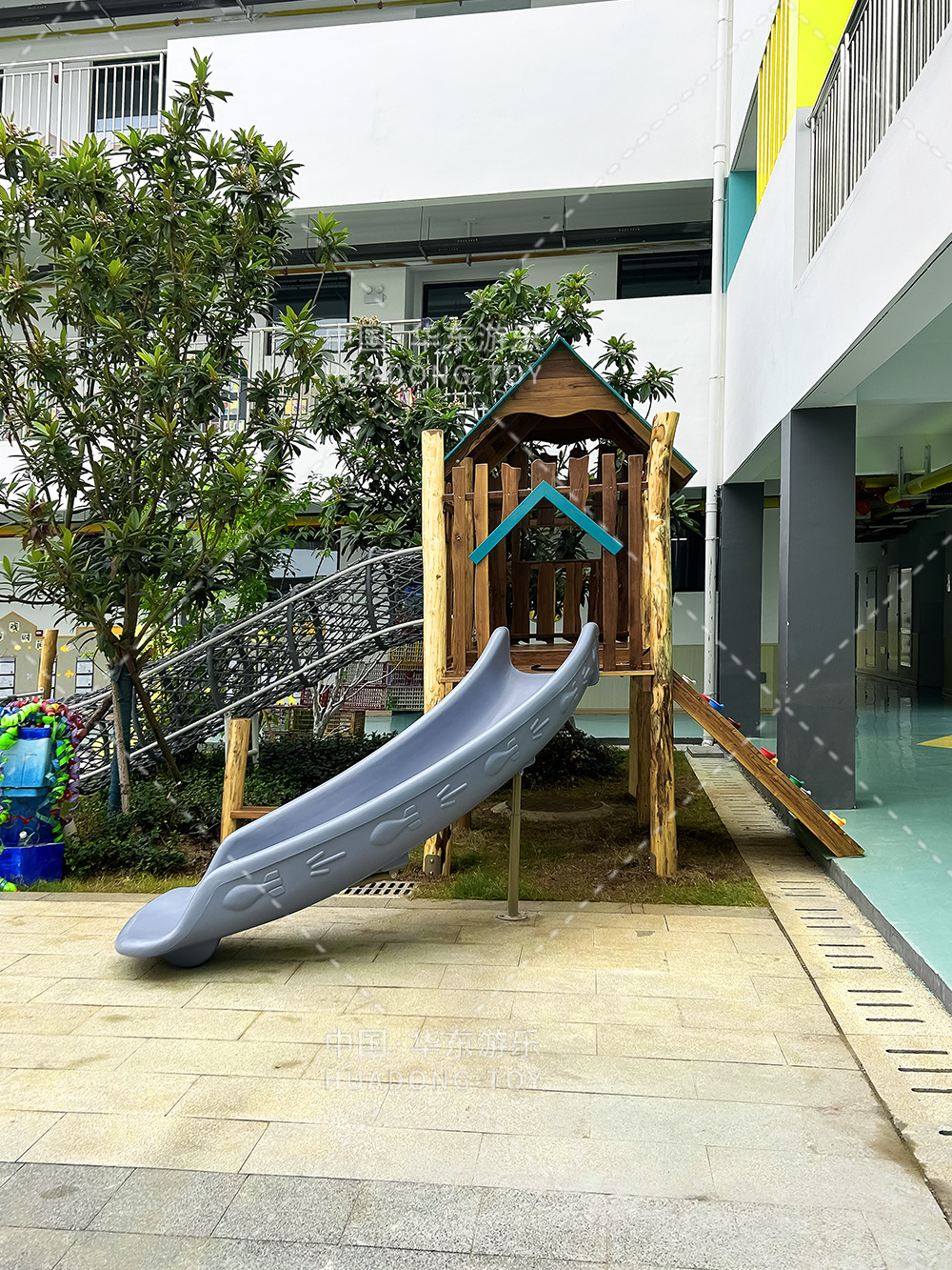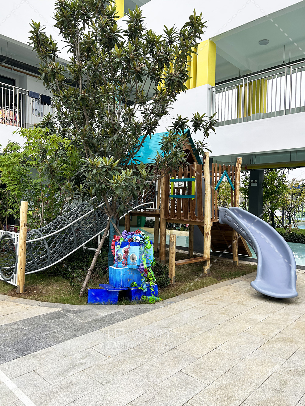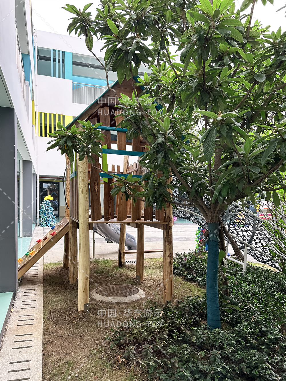 湖北省京山市直属机关幼儿园是一个专业性学期教育培训学校,此次选用的是乐鱼游乐自主研发和设计木质主题的儿童游乐设备,整个游乐设备充分的结合当地的丛林环境,打造一个属于孩子们喜欢的丛林秘境。