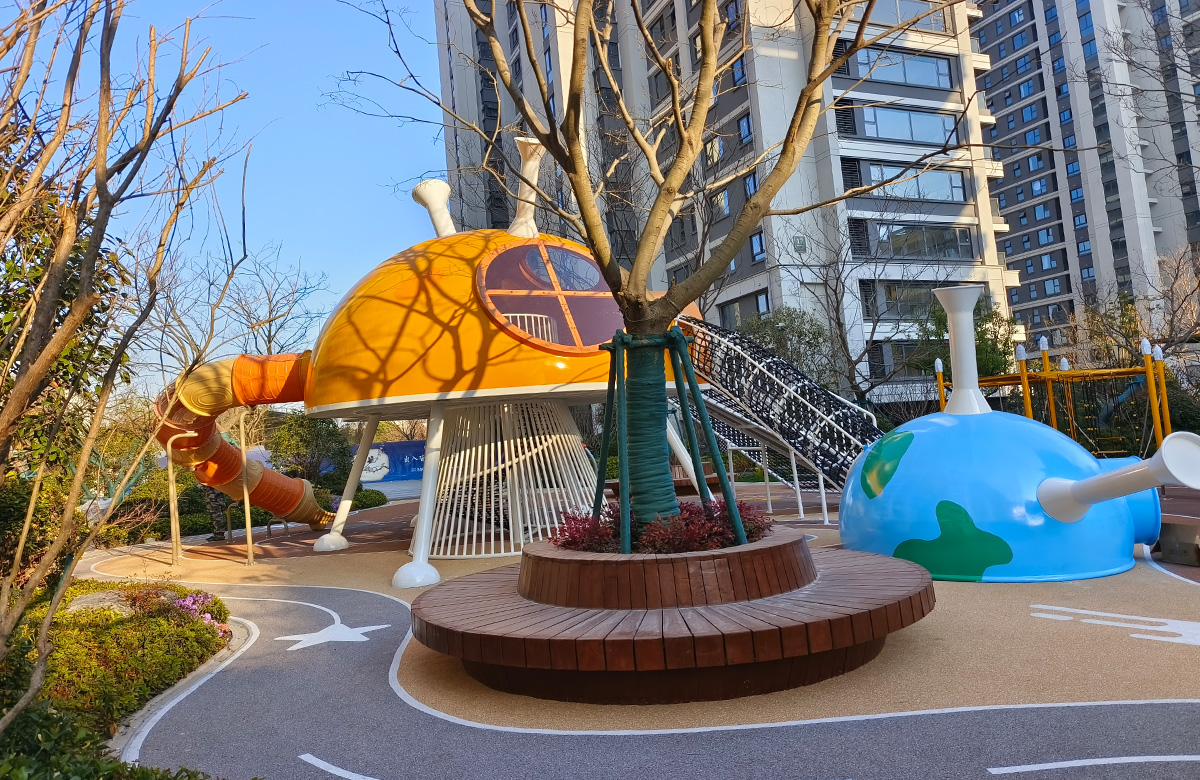 • 江苏镇江市中海丹阳臻如府精心打造了一片充满童趣的儿童游乐设施区,专为小朋友们设计。这里设置了丰富多彩的游乐项目,包括组合秋千,让孩子们在秋千的起伏中享受飞翔的快乐;旋转座椅,随着轻柔的旋转带来无尽的欢笑;还有独特的飞碟主题设备,激发孩子们探索宇宙的好奇心。整个游乐区安全舒适,为孩子们提供了一个寓教于乐的欢乐天地。